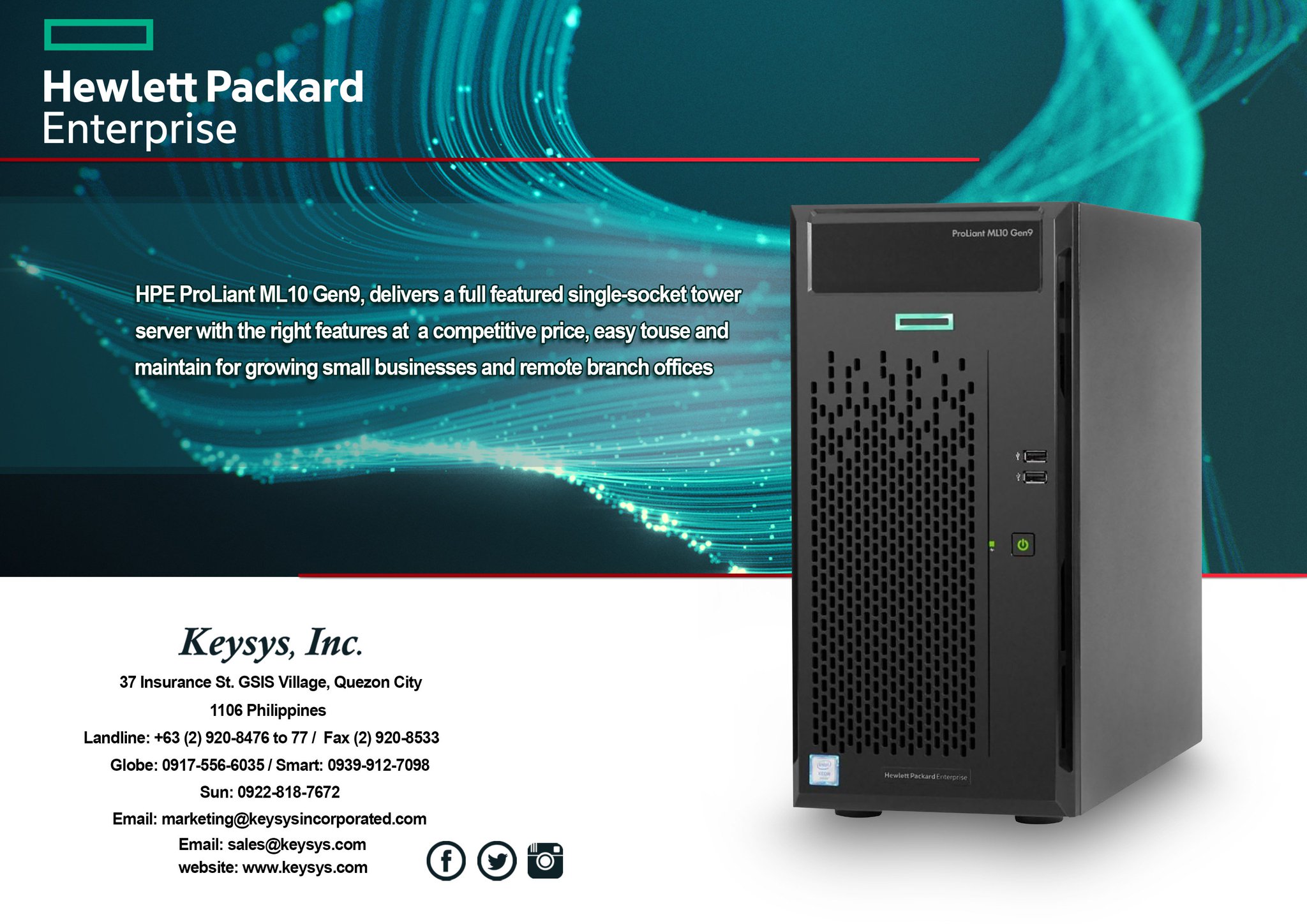 Keysys Inc On Twitter Hpe Proliant Ml10 Gen9 Delivers A Full Featured Single Socket Tower Server With The Right Features At A Competitive Price Easy Touse And Maintain For Growing Small Businesses And